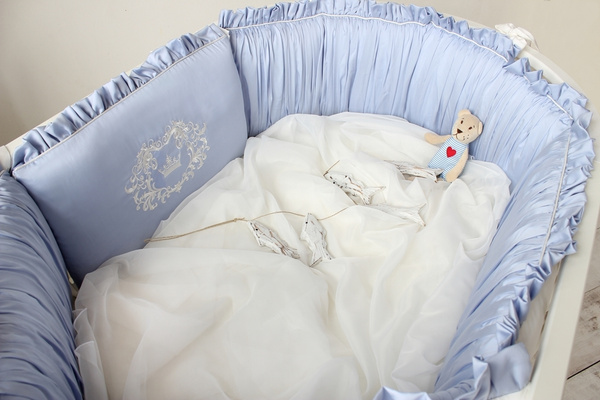 Бортики из Tensel в детскую кроватку для новорожденного "Голубые сны