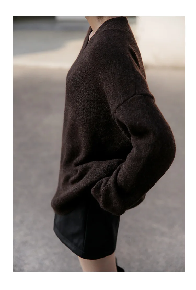 Зимний пуловер сплошного цвета с длинным свободным свитером с v