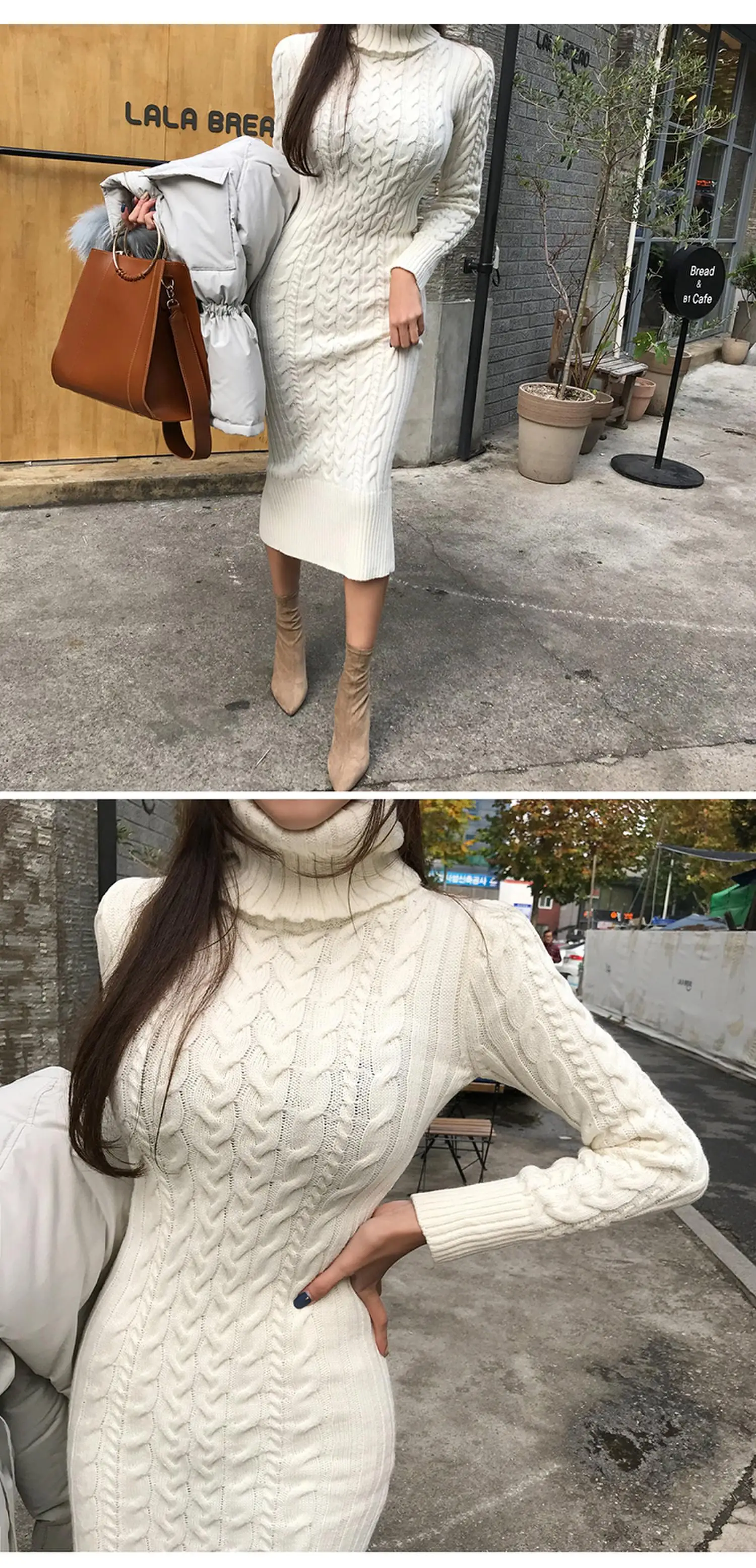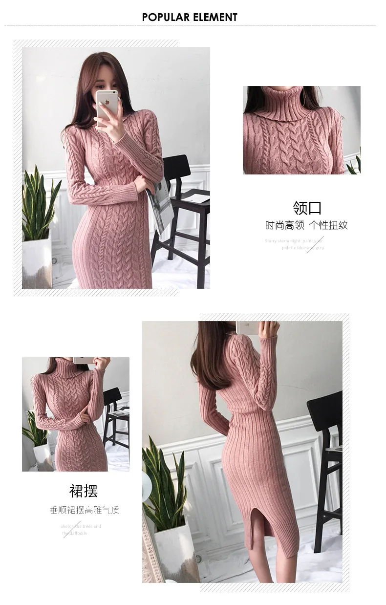 Длинный пуловер с высоким воротником, трикотажное платье, стиль, зимняя