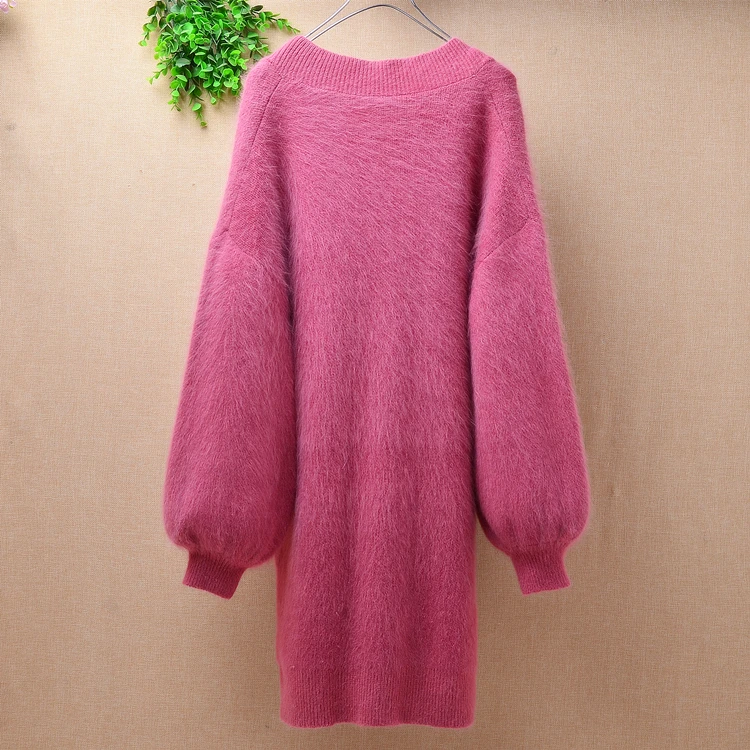 Зимний пуловер сплошного цвета с длинным свободным свитером с v